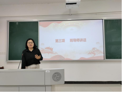 随后,班导师蒋馨逸就此次培训班学习情况进行总结。她表示,发展对象培训班的结业并不意味着学习的停止,全体学员应时刻牢记初心、不忘使命,并通过不断学习党的创新理论,学习榜样先进,健康成长成才,为全面推进中华民族伟大复兴而努力奋斗。