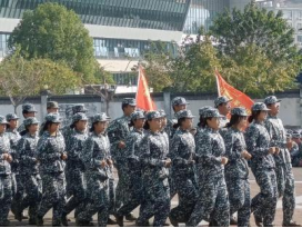 军训第五日,“一二一!一二一!”教官的口令声回荡在通向训练场地的小路上,回应它们的是同学们坚实有力的脚步声。踏着秋意,迎着秋风,同学们再度踏上这片熟悉的场地。