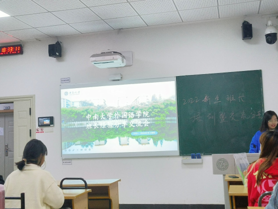 2022年11月16日,外语院2022级新生班长培训暨交流分享会顺利开展。本次分享会邀请到先进班集体荣誉获得集体的两位班长英语2001班吴柳萱、2103班林丽缇进行经验交流。