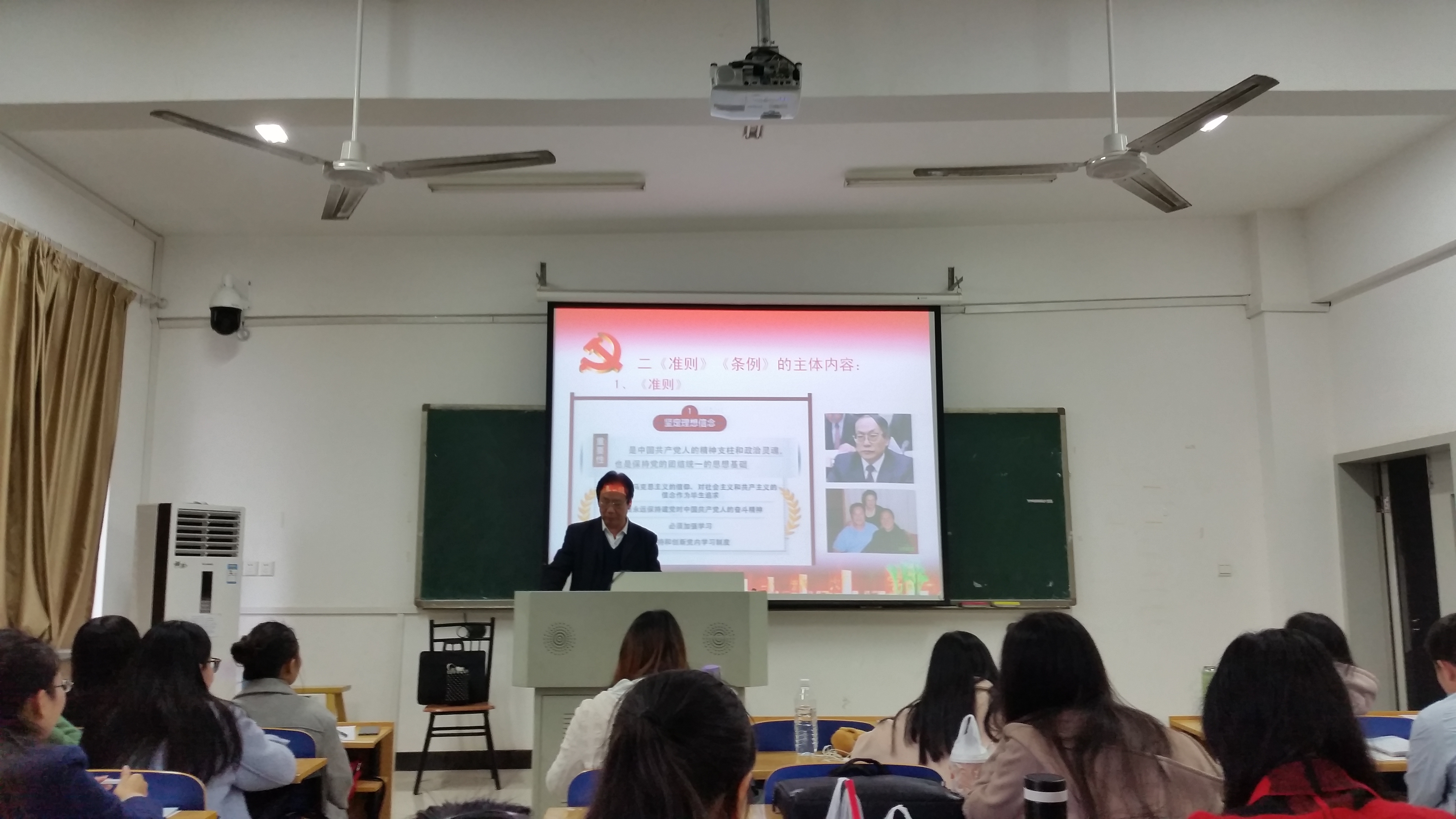他还鼓励学员从现在起对照共产党员的标准严格要求自己,认真学习《准则》、《条例》,深刻领会两个文件的精神实质。内化于心,外见于行,在实践中锻炼和提高自己,在学习生活中发挥先锋模范作用,做一名合格的共产党员。