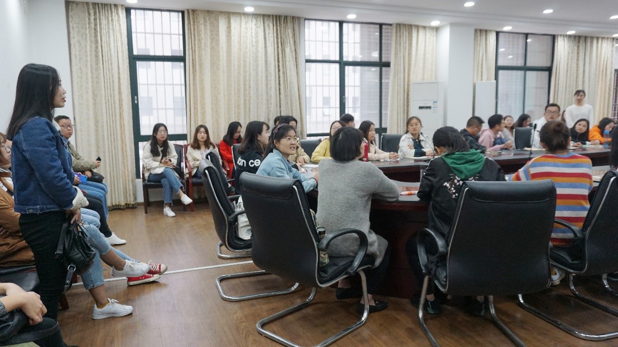 最先进行分享的是杨伟学长,他先向大家介绍了自己在研一期间是如何扎实的打好基础,为研二的丰富实习做好了准备。之后学长向大家分享了自己对于研究生三年的总体规划和建议。最后分享了自己在汉语桥活动、隆平高科、湖南省人民医院、中国日报湖南记者站、湖南省商务厅援外项目、环球网新闻编译等实习过程中的体验,介绍了各实习岗位的条件和基本情况,强调了研一期间时间充裕,要抓紧时间打好基础。