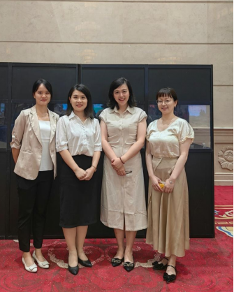 图1 同传团队鲜鶱(学生)、郭薇、符白羽、彭时英在口译现场