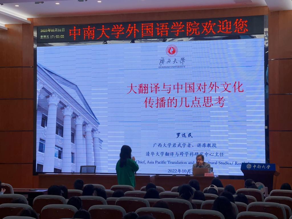 3月31日下午,中国英汉语比较研究会会长、广西大学君武学者罗选民教授做客意大利贵宾会登录网址名师名家论坛,以“大翻译与中国对外文化传播的几点思考”为题,为广大师生带来了一场精彩的学术讲座。讲座由副院长杨文地教授主持,学院近两百名师生在外语楼一楼报告厅聆听讲座。